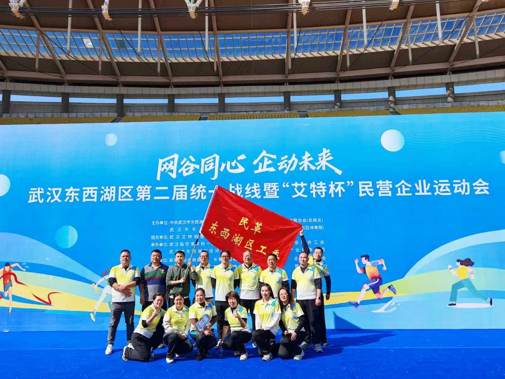 10月22日上午,“网谷同心 企动未来”武汉东西湖区统一战线暨第二届“艾特杯”民营企业运动会开幕。民革东西湖区工委会由副主委钟兆峥、涂丽萍带队参赛,在赛场上展现出昂扬向上、团结协作的良好精神风貌。
