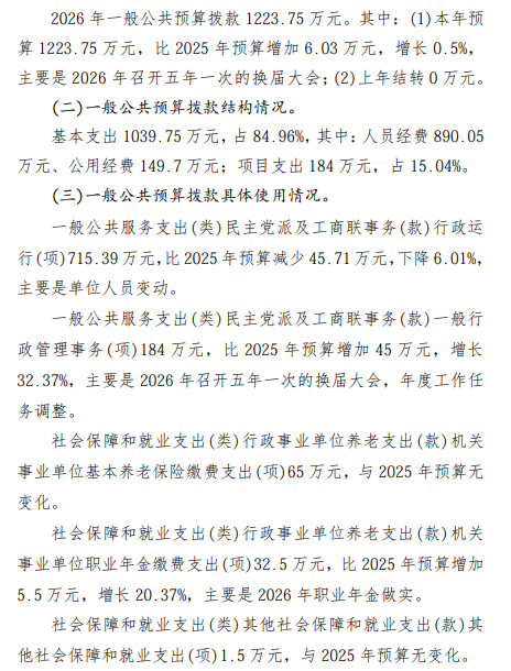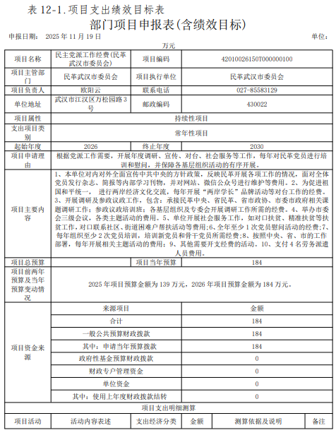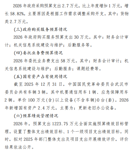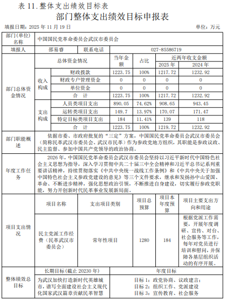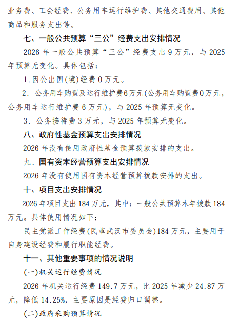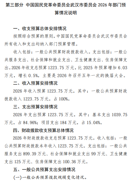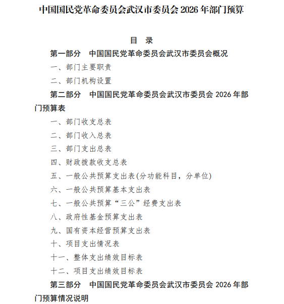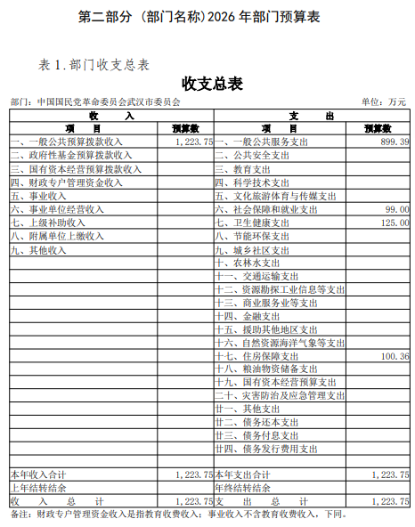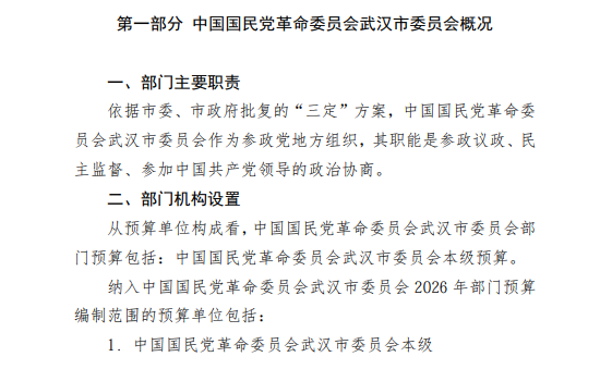 中国国民党革命委员会武汉市委员会2026年部门预算