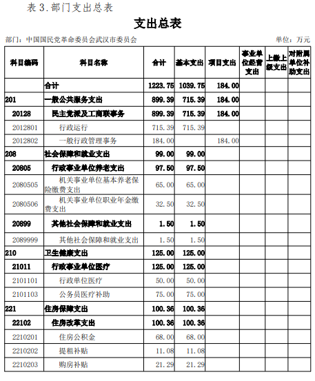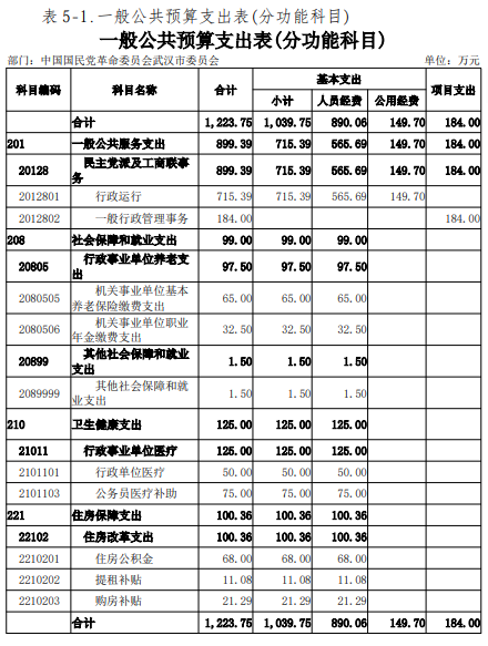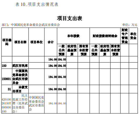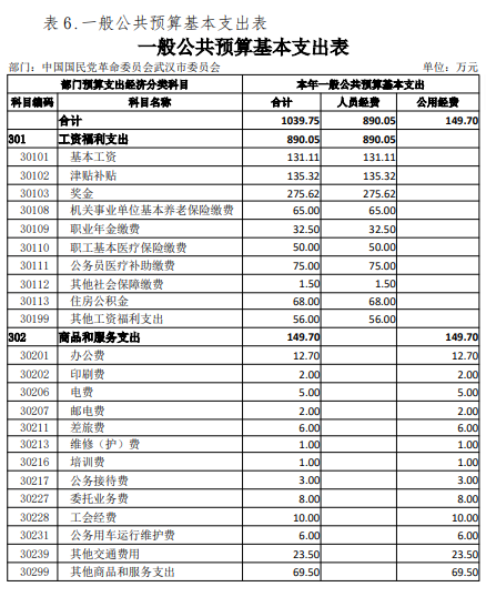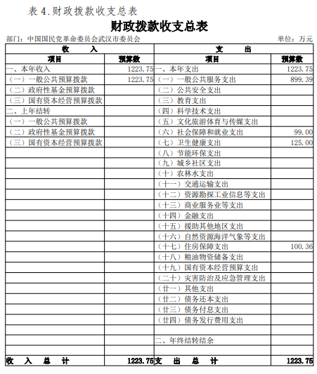 2024年度中国国民党革命委员会武汉市委员会部门决算公开